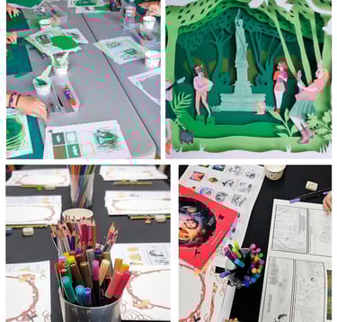 Imparto diferentes talleres de cómic, ilustración, papercut y charlas, donde comparto mi proceso de trabajo como ilustradora y autora de cómic.