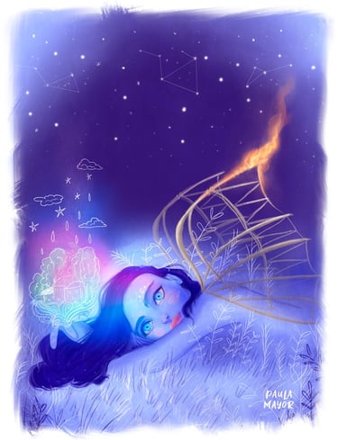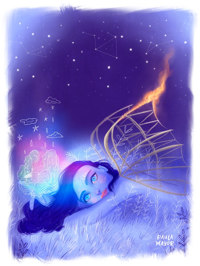 Trabajo como ilustradora, diseñadora gráfica, editorial y textil, también soy autora de cómic e imparto talleres y charlas. Todas estas actividades tienen un nexo en común, que me permiten disfrutar de mi pasión por la ilustración.